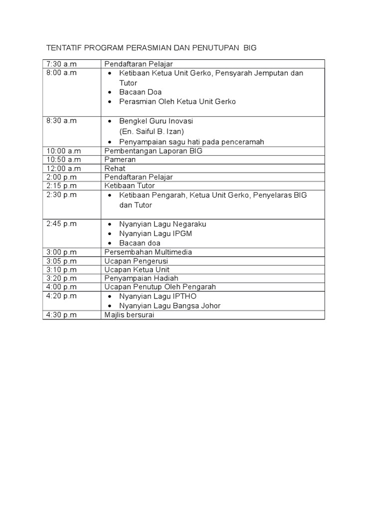 Contoh Tentatif Program Dan Template By Da_Mariela352 01 Jun, 2022 Post a Comment Tentatif Program Mig 1 Pdf Tentatif Program Perasmian Big Pdf Tentatif Program Pdf Tentatif Program Contoh Tentatif Program Pdf Share No comments for "Contoh Tentatif Program Dan Template"